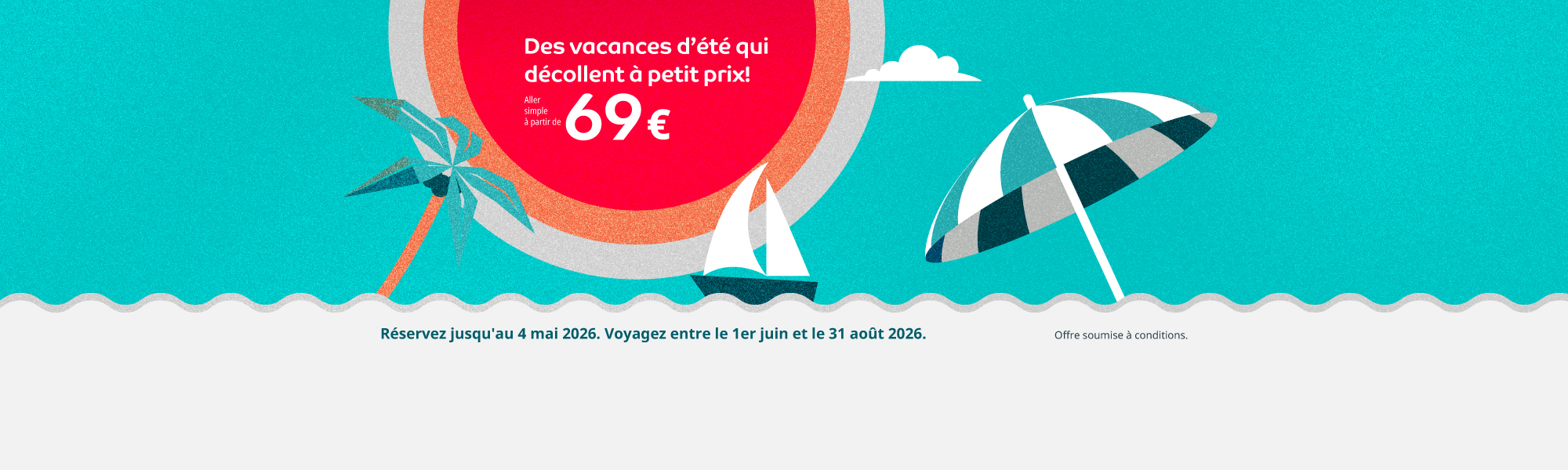 Rendez cet été inoubliable avec des tarifs aller simple à partir de seulement 69 €. Réservez tôt, économisez plus et commencez le compte à rebours pour votre prochaine escapade !